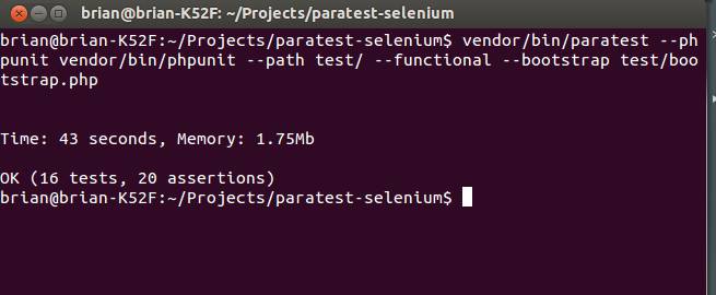 This is an example of running Selenium Web Driver tests in parallel with ParaTest. The tests use the Chrome browser to test the Backbone.js Todo app. Running on Ubuntu 12.04 with Chrome Version 22.0.1229.79 - the results were as follows:
