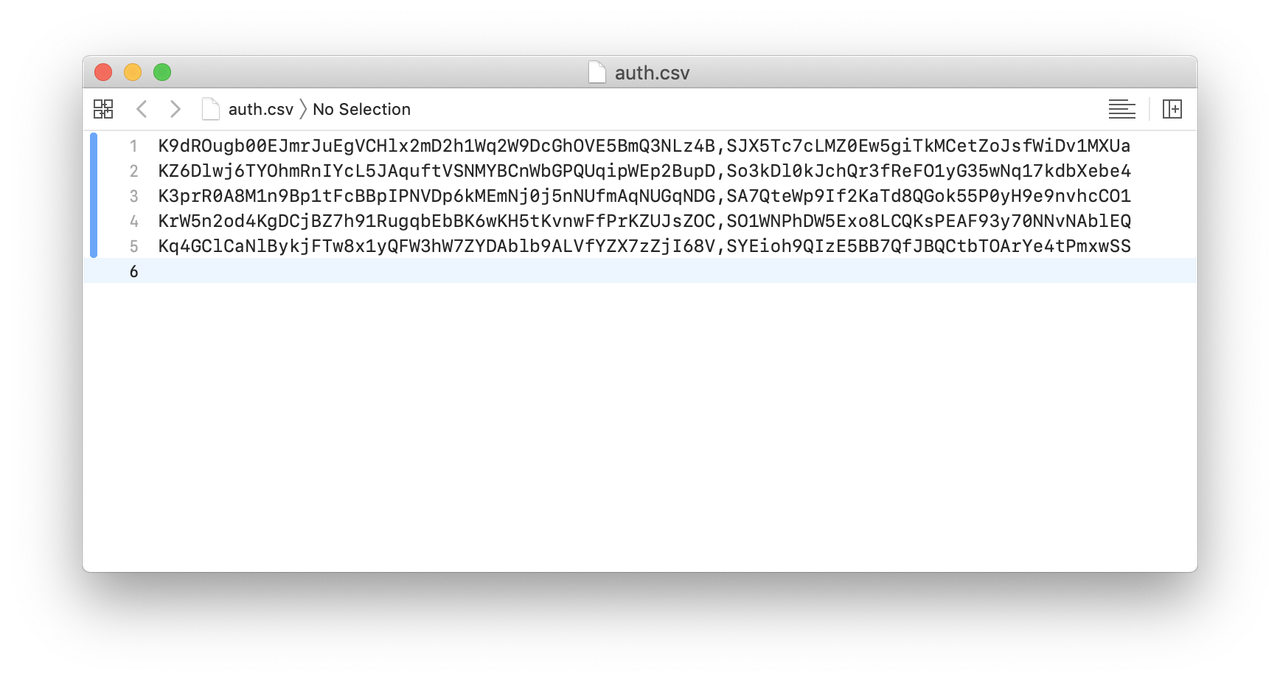 csv => Path to csv of authentication key/secret pairs e.g. "csv/auth.csv"