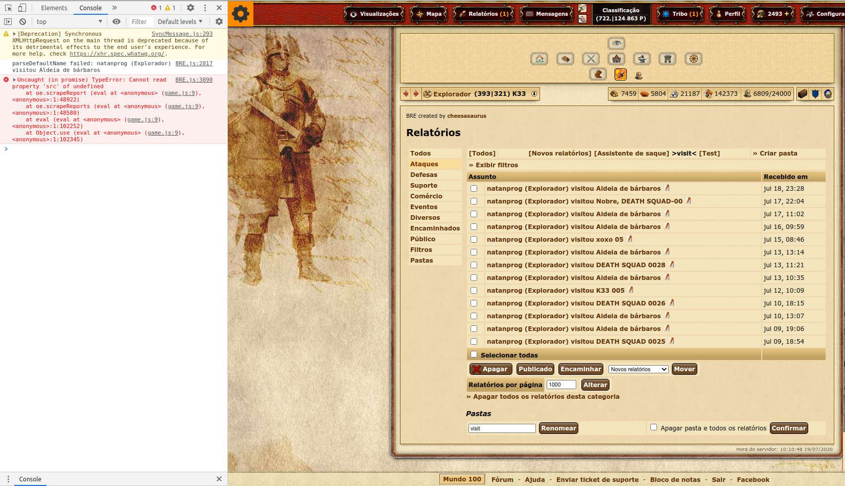 parseDefaultName failed: natanprog (Explorador) visitou Aldeia de bárbaros BRE.js:3890 Uncaught (in promise) TypeError: Cannot read property 'src' of undefined at oe.scrapeReport (eval at <anonymous> (game.js:9), <anonymous>:1:48922) at oe.scrapeReports (eval at <anonymous> (game.js:9), <anonymous>:1:48580) at eval (eval at <anonymous> (game.js:9), <anonymous>:1:102252) at Object.use (eval at <anonymous> (game.js:9), <anonymous>:1:102345)