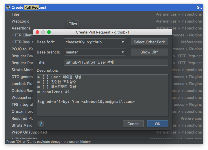 만약 Jetbrains의 IDE를 사용하고 계신다면 Task 연동을 통해서 Github와 연동하시는 것을 적극 권장해 드립니다.