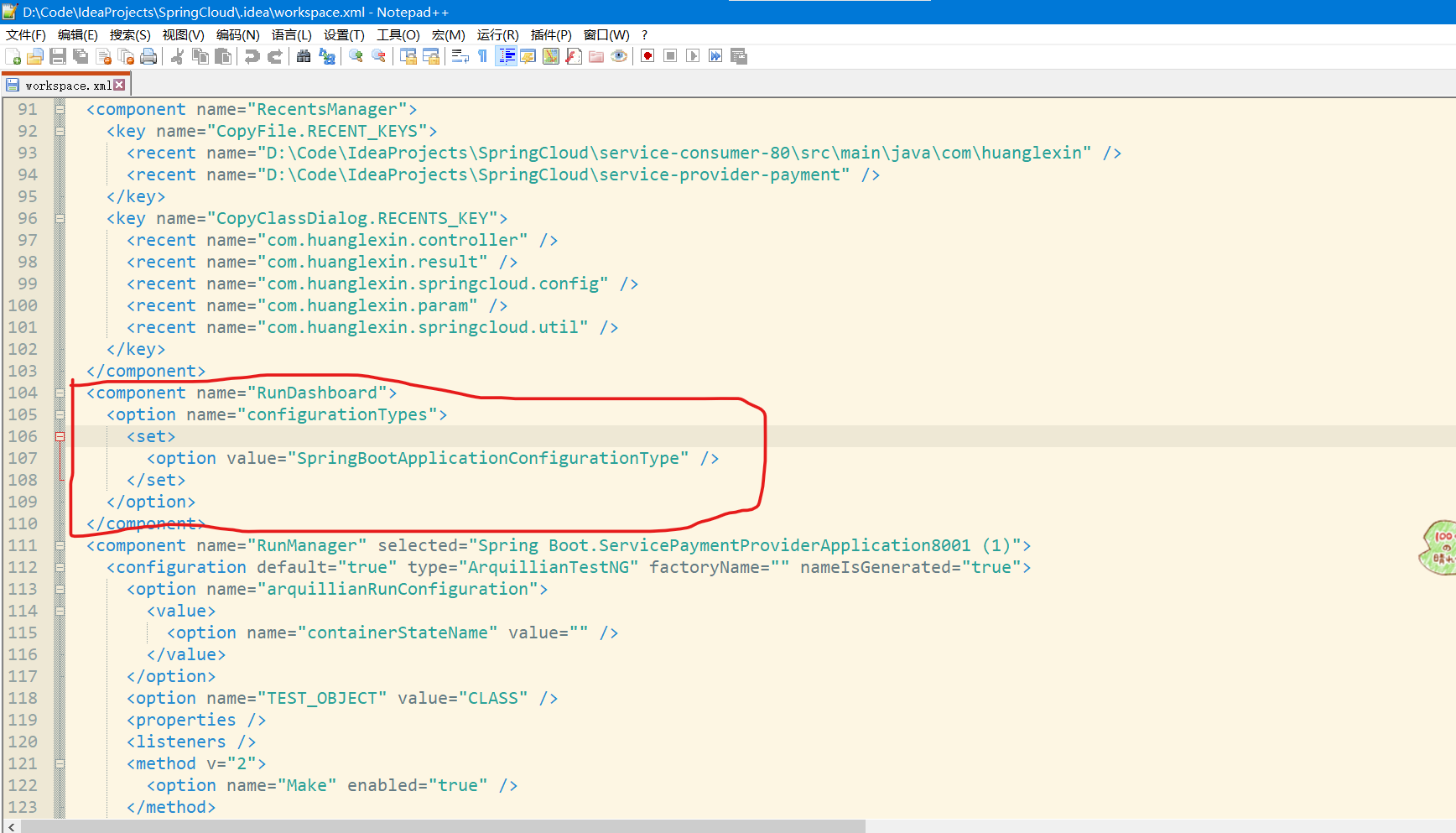 如果没有, 则打开项目所在文件目录, 进入到 .idea目录并找到名称为 workspace.xml 的文件