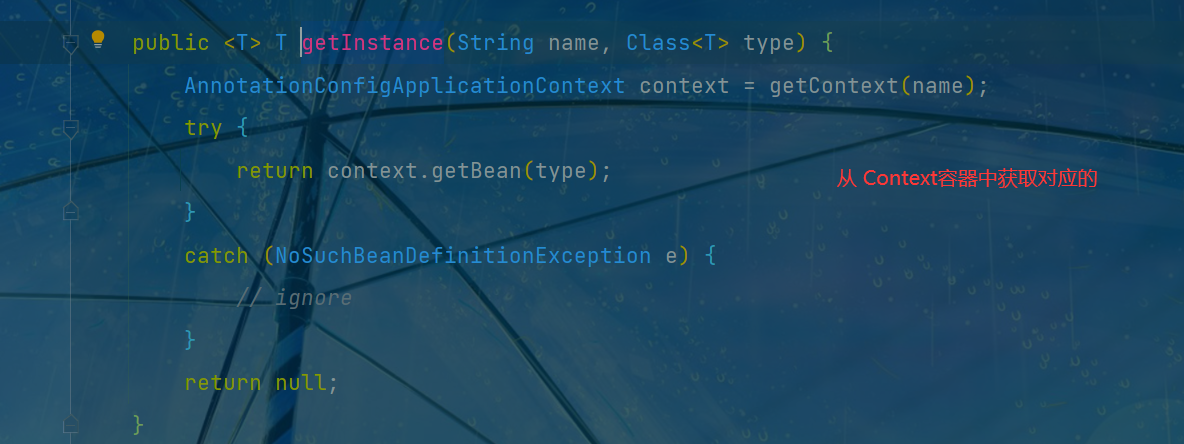 }继续进入到 getInstance(...)方法内部, 其是从容器中获取对应类型的Bean
