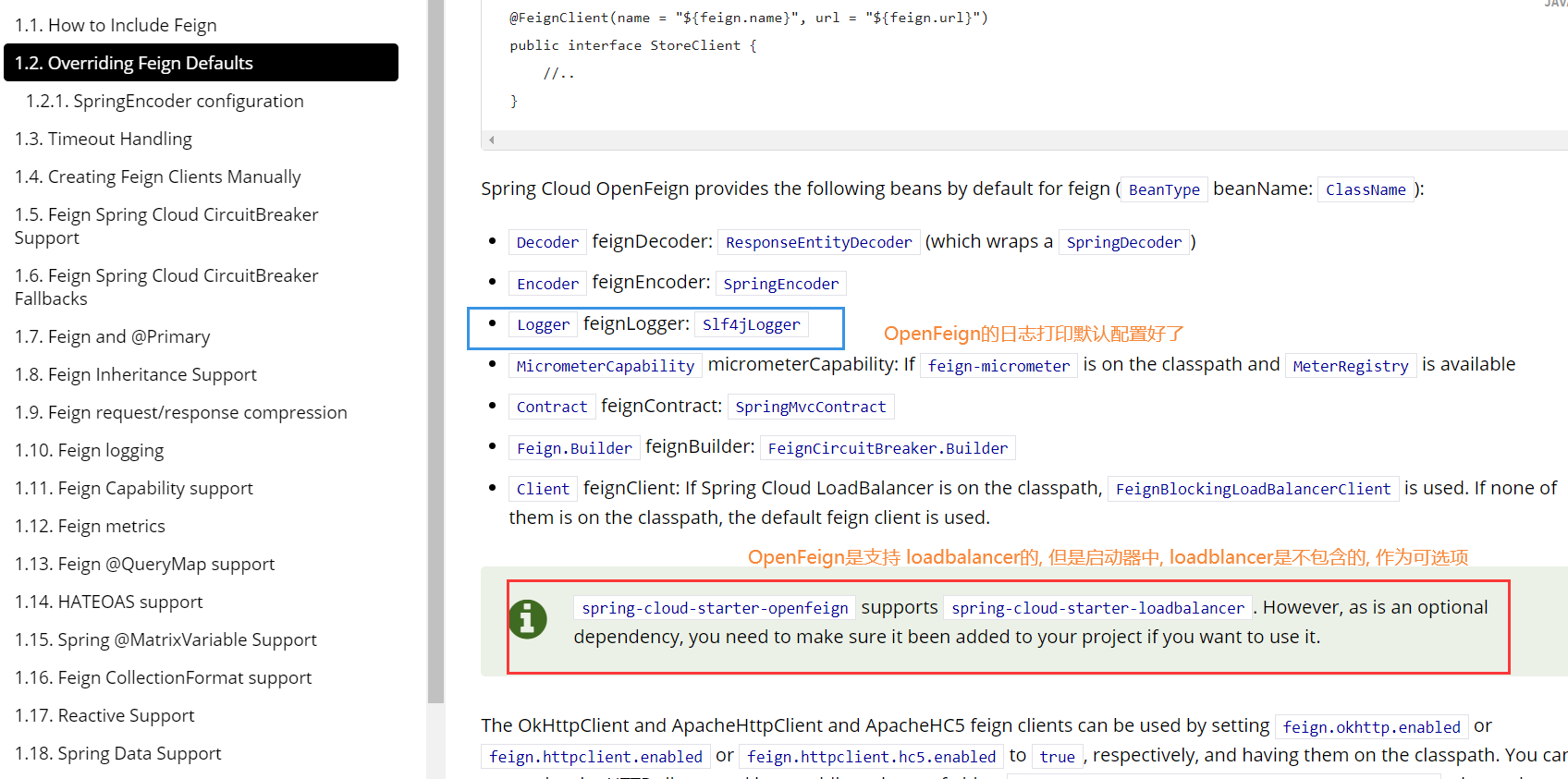 OpenFeign 支持负载均衡, 这一点在官方文档中已经说明了
