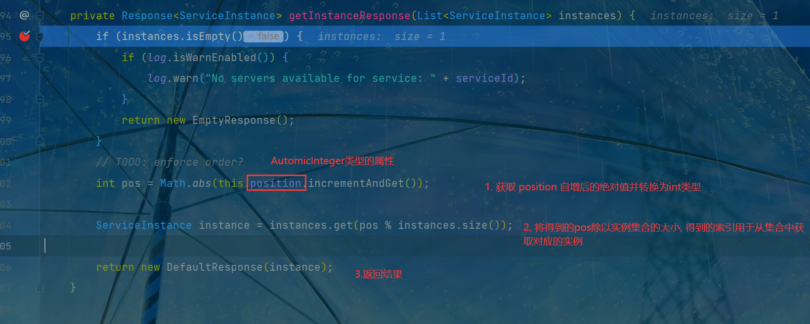- 可以看到, 获取了负载均衡处理器后, 通过这个方法获取到了实例id对应实例的详细信息, 包括实例的ip地址等