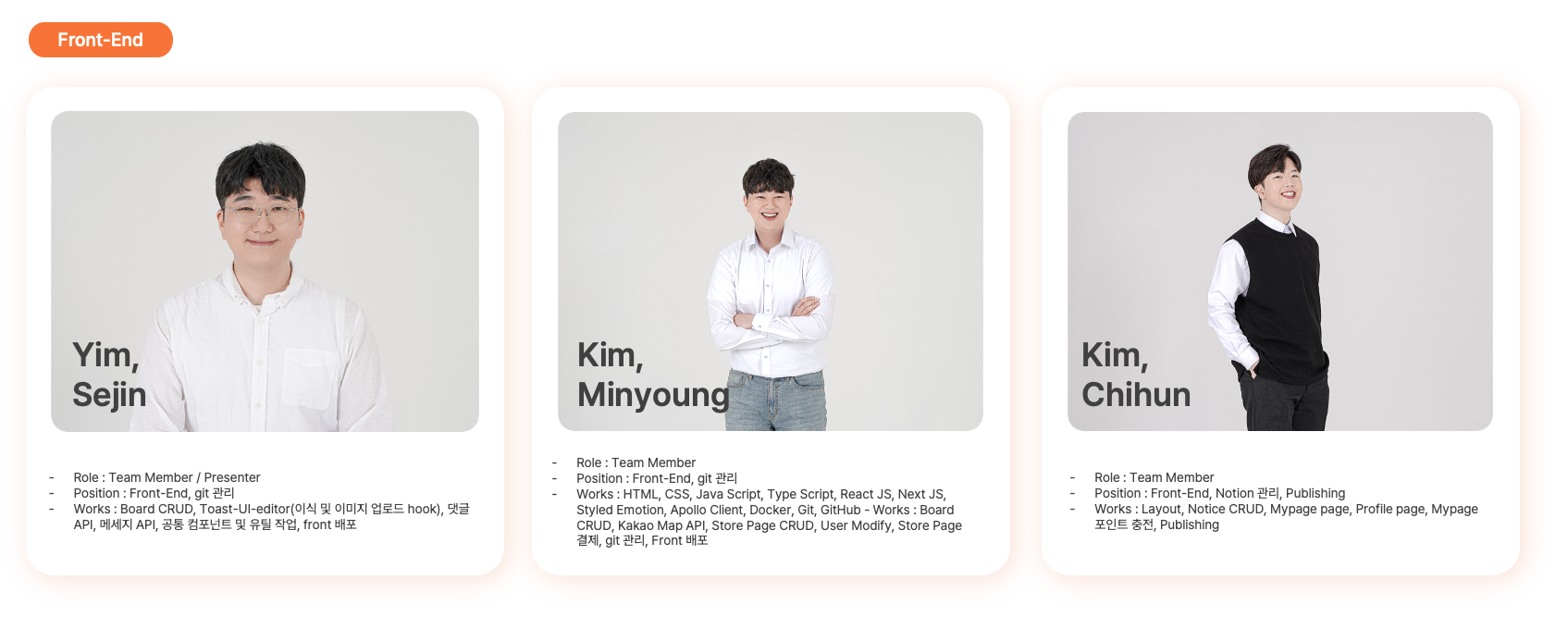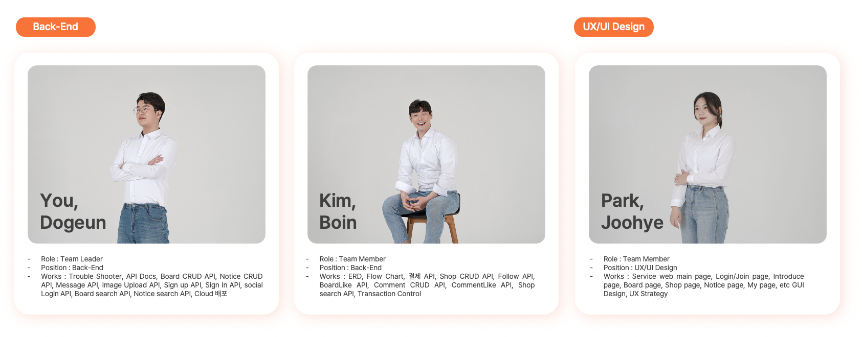 서비스의 소개와 팀원 소개가 들어있는 소개 페이지