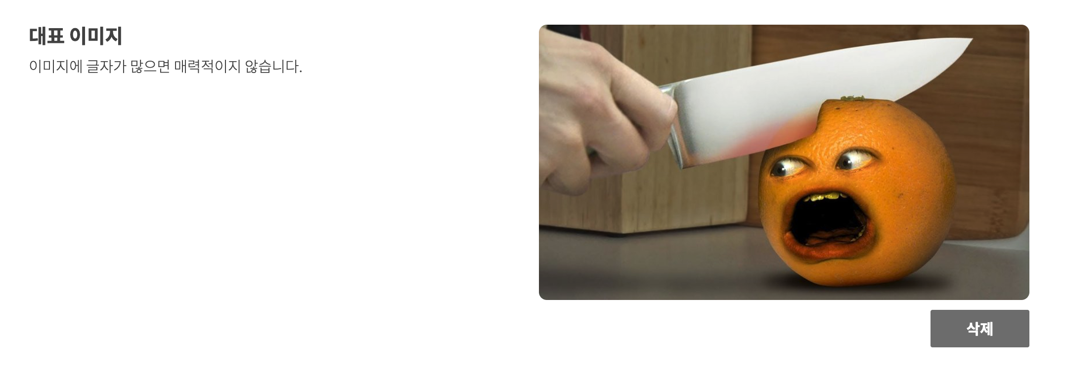 - 이미지가 업로드 되었다면 삭제 버튼이 생기며 이미지 부분은 클릭 안됨.