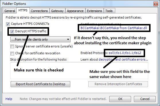 A: You probably didn't set up your SSL certificate correctly. There's a lot of steps and it's easy to miss one. See here for iOS instructions and here for Android instructions. If all you see on the left hand side of Fiddler is "Tunneling to " then Fiddler isn't able to decrypt any of the requests due to a problem with your certificate. Try opening Safari (not Chrome) on iOS, or any browser on Android. Then browse to www.google.com. If the page loads, then FFRK should be working.
