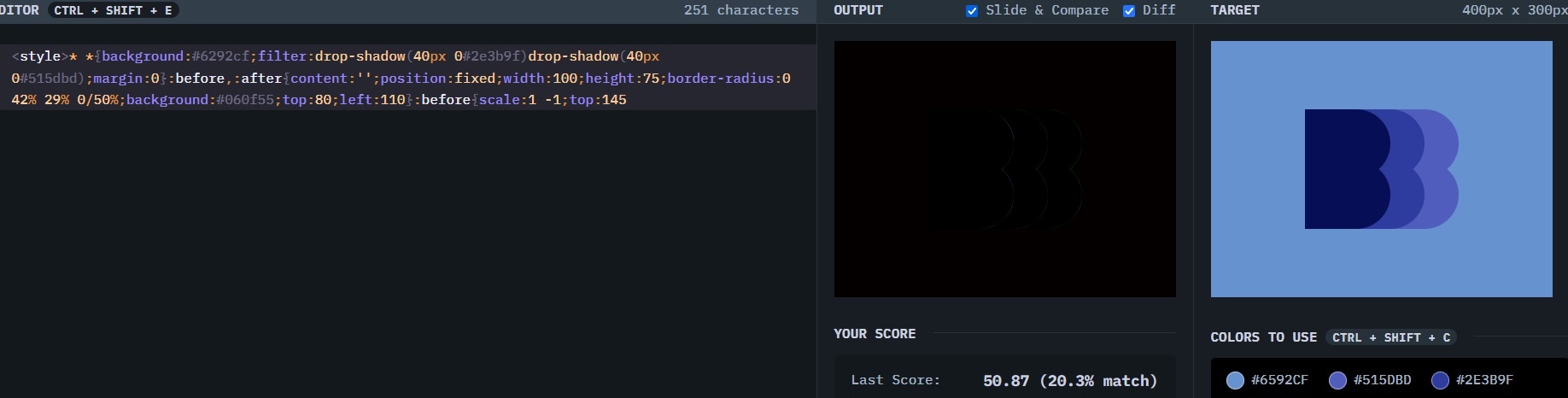 #6592CFinstead of#6292CF. You will then have to tweak your border-radius values since you'll be stuck with your solution at 99.9% match. 😄