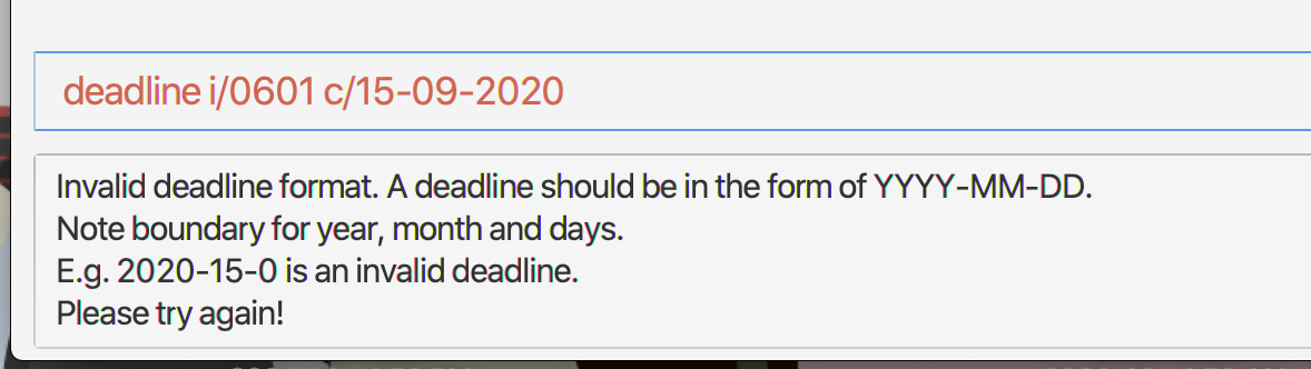 The information provided in the User Guide under Quick Start point 4 is inaccurate as format of date is supposed to be YYYY-MM-DD instead of DD-MM-YYYY.