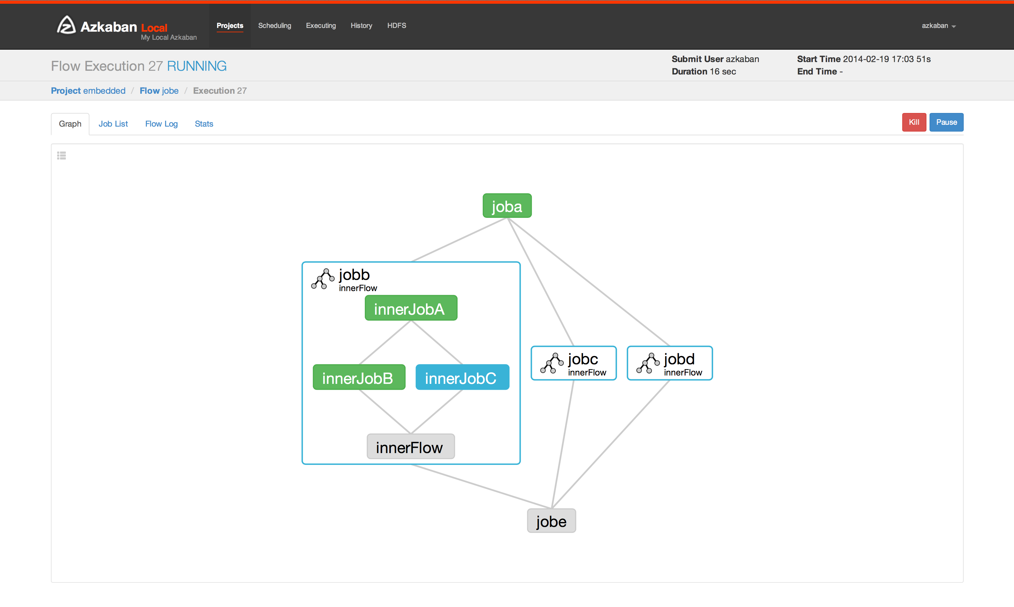 - 링크드인에서 개발한 workflow 스케쥴러, 시각화된 절차, 인증 및 권한관리, 작업 모니터링 및 알람 등의 기능을 가짐.