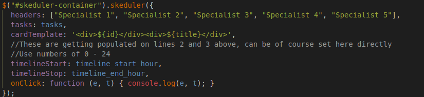 …melineStart' and 'timelineStop' while initializing the skeduler (will default to 0 and 24 respectively if not specified)