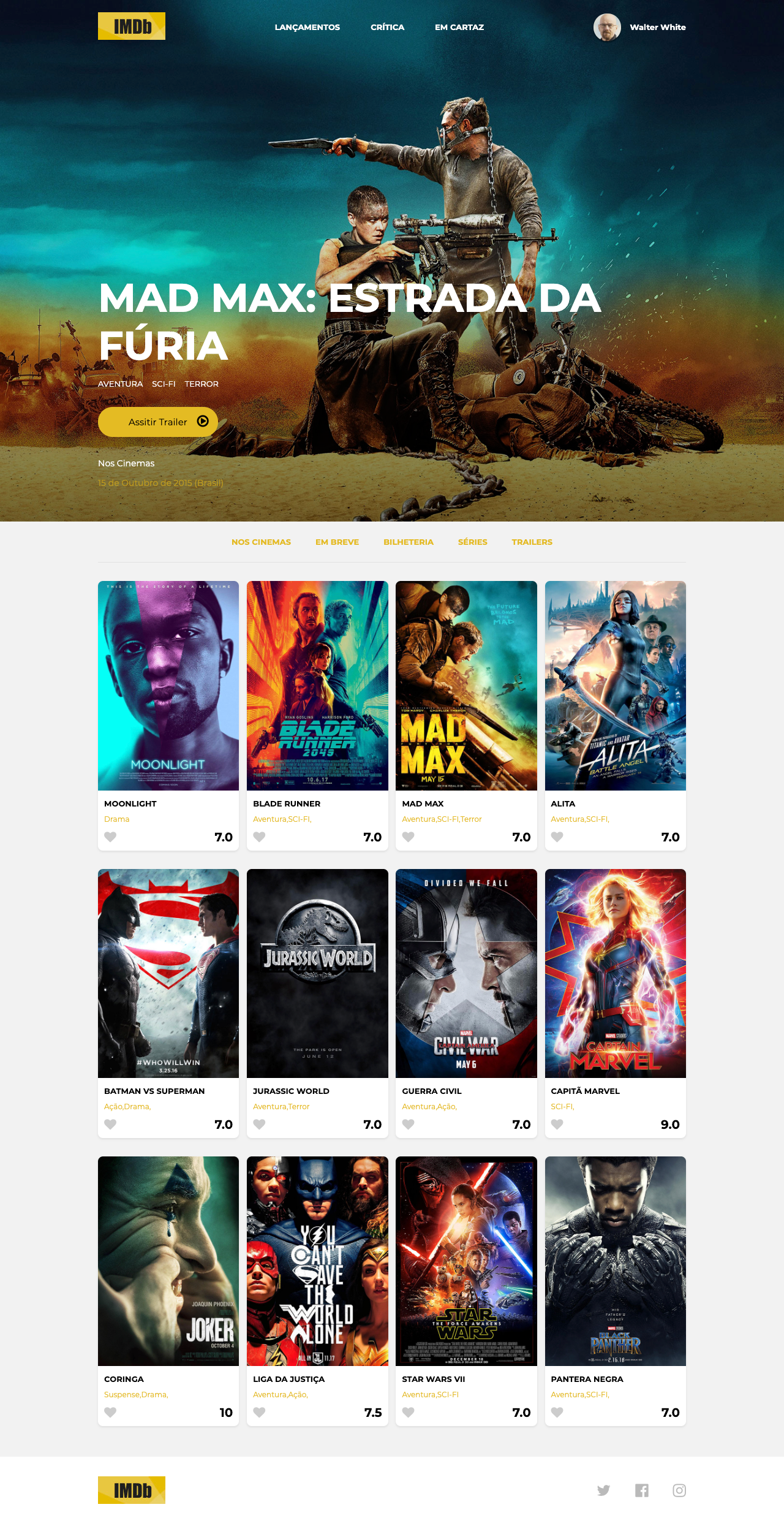 O desafio é desenvolver a página inicial de um site de avaliação de filmes (IMDB - Internet Movies Database) utilizando apenas HTML5 e CSS3.