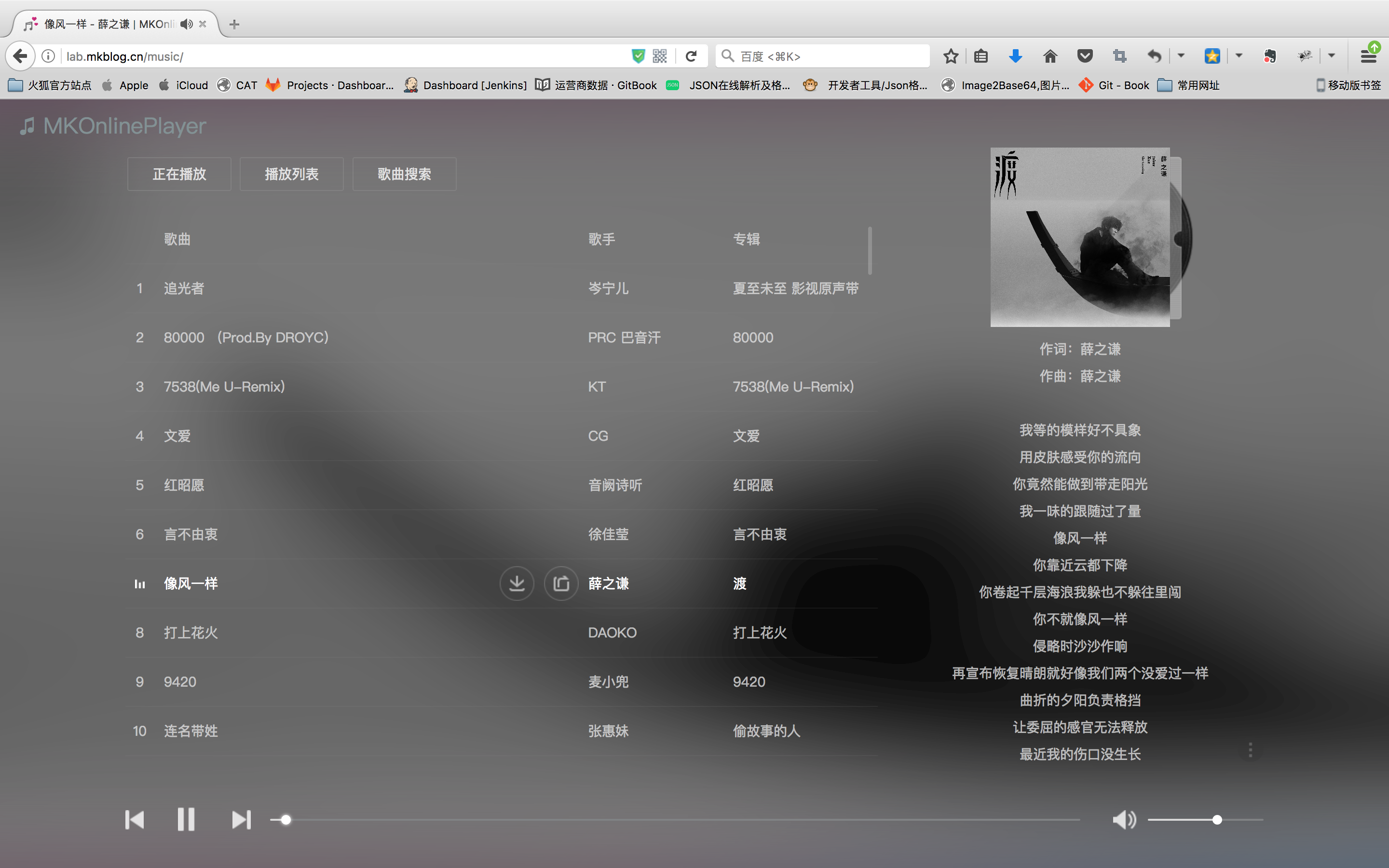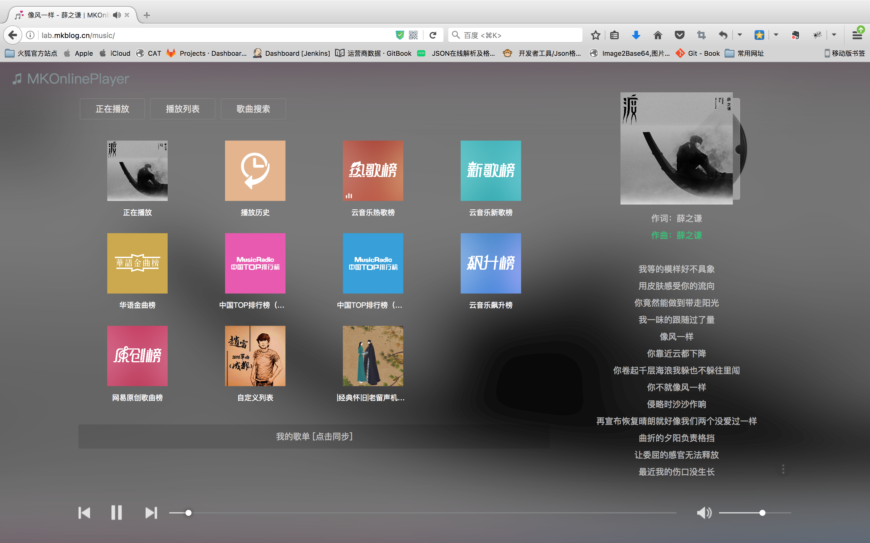 MKOnlineMusicPlayer是一款开源的基于网易云音乐api的在线音乐播放器。具有音乐搜索、播放、下载、歌词同步显示、个人音乐播放列表同步等功能。 前端界面参照QQ音乐网页版进行布局,同时采用了流行的响应式设计,无论是在PC端还是在手机端,均能给您带来原生app般的使用体验。