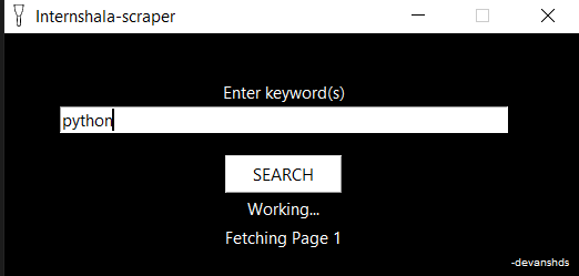 TL;DR : Web scraper application using bs4 and tkinter with some multithreading to scrape internships from www.internshala.com