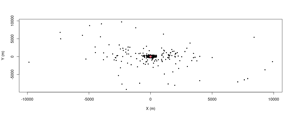 plot(pol,xlab='X (m)',ylab='Y (m)',pch=16,cex=0.6)