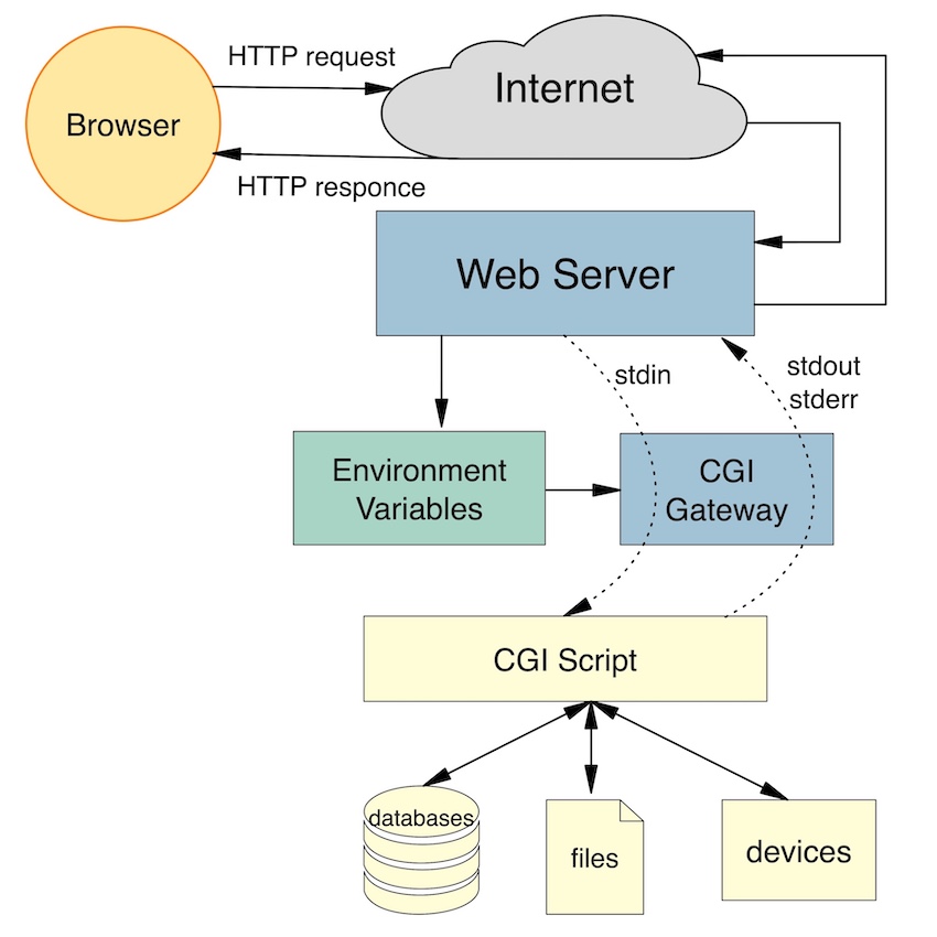 CGI is a standard for running external programs from a web server. When a user requests a web page that should be handled by a CGI program, the web server executes the program and returns the output to the user's web browser.