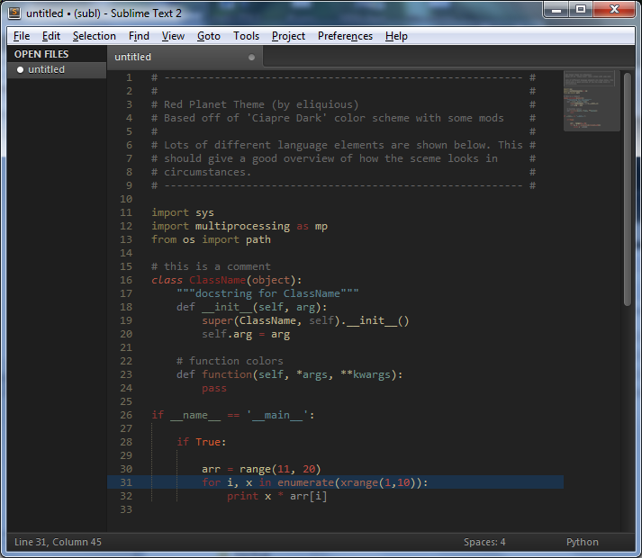A Sublime Text 2 color scheme based off of the "Ciapre Dark" theme with slight mods