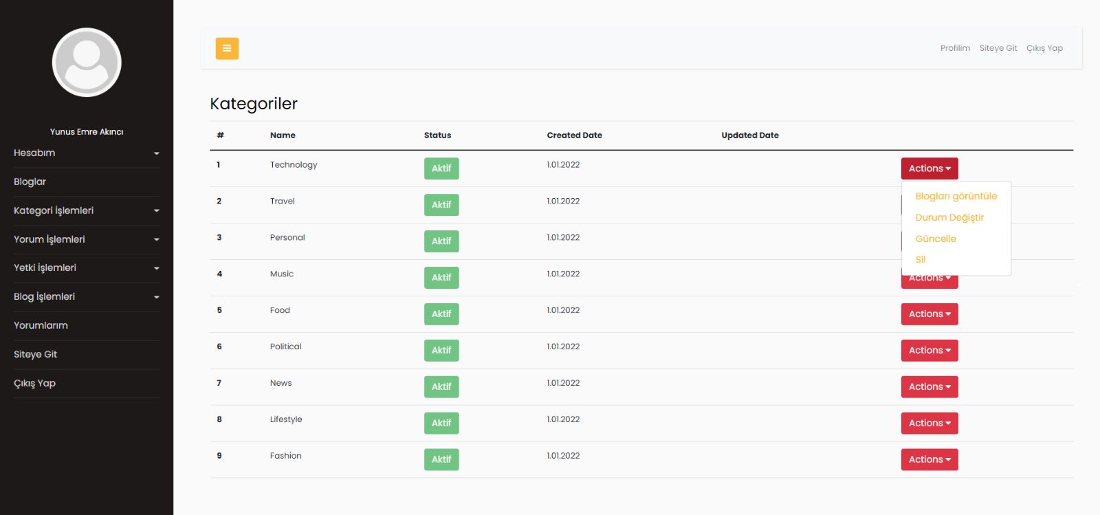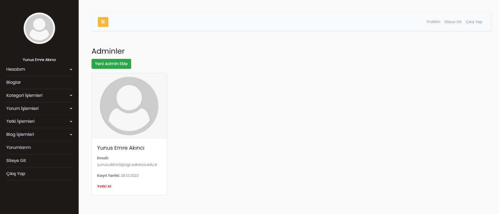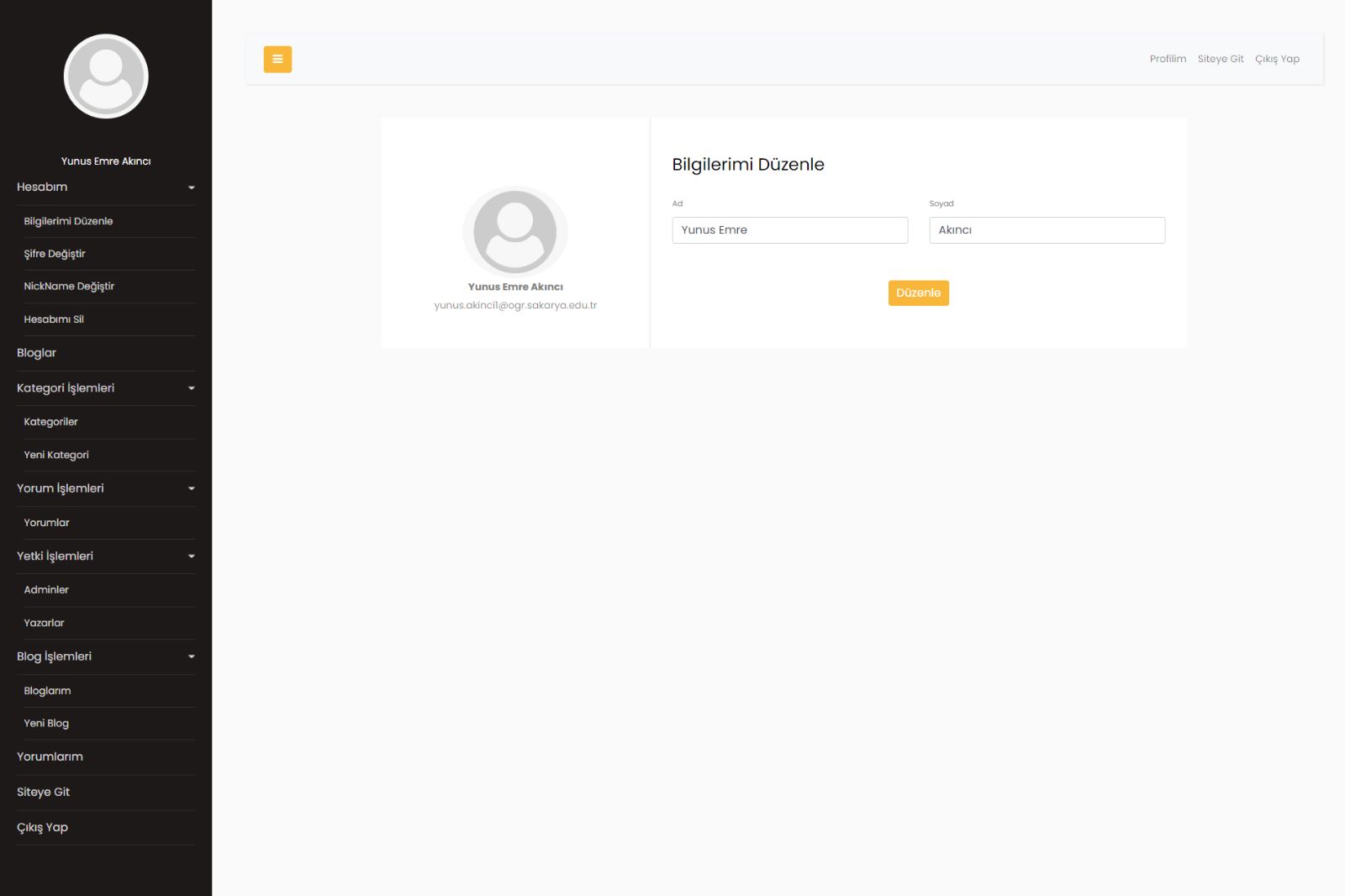 SauBlog SauBlog, kullanıcıların kayıt olup blog yazabildiği, bloglara yorum yapabildiği bir blog sitesidir. Kullanılan Teknolojiler Backend: Asp.Net Core 6 MVC, Entity Framework Core ORM Frontend: HTML5, CSS3, Javascript, Bootstrap Database: PostgreSQL Ekran Görüntüleri