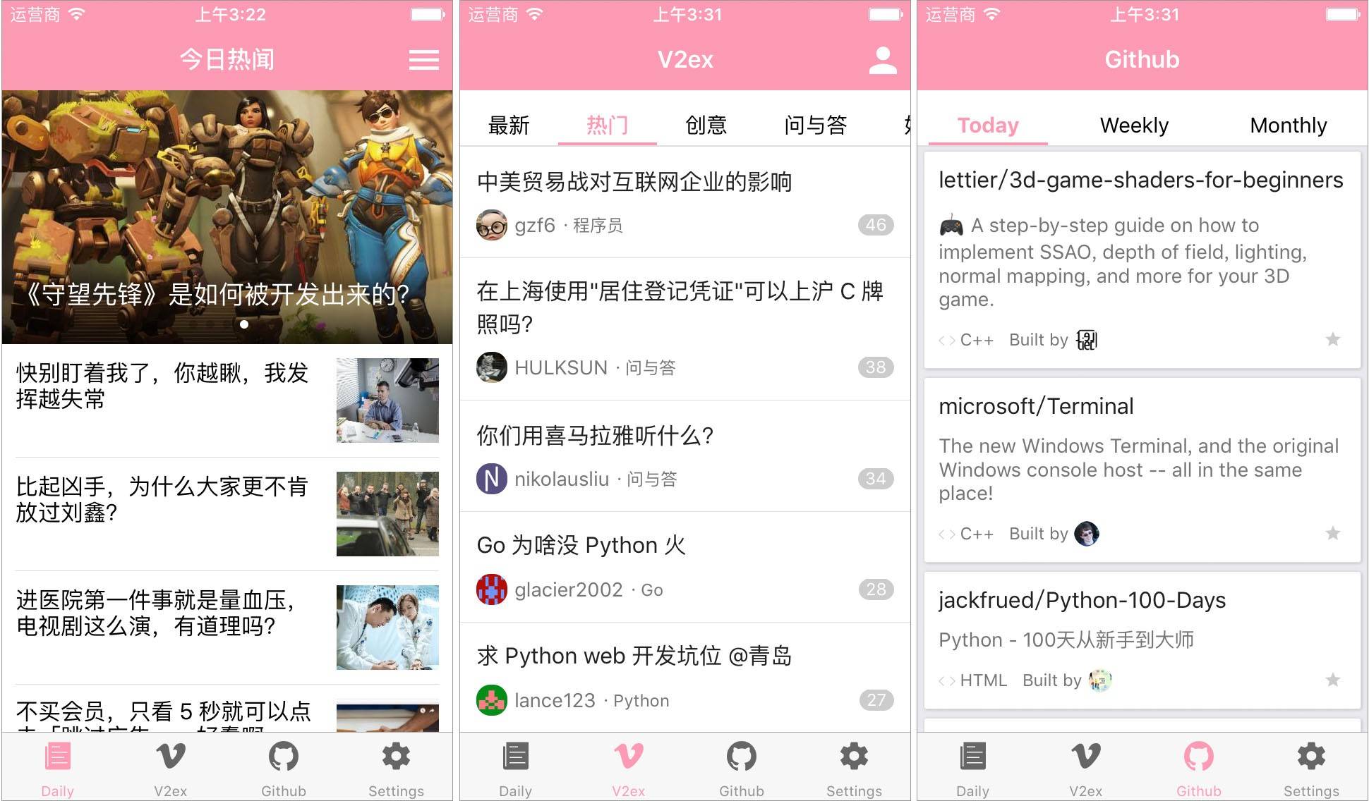 基于 React Native IOS 的聚合阅读应用,包含知乎热点新闻、v2ex、github、Github trending 的内容。