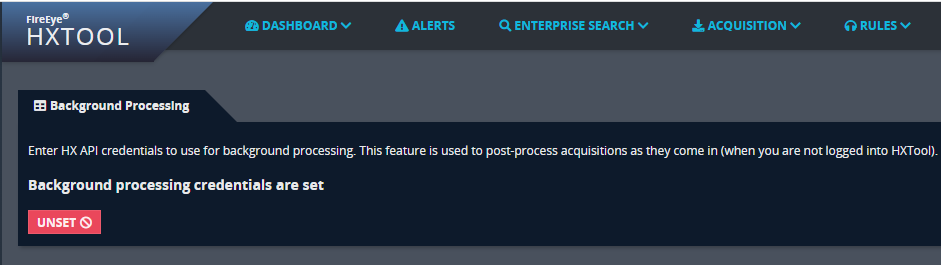 The HXTool scheduler requires a set of Endpoint Security (HX) API credentials for all tasks, whether scheduled or on-demand - this required for HXTool to be able to process tasks, such as Bulk Acquisition post-processing via Task Profiles. These credentials are stored securely using the Python keyring module. You can use the same credentials that you've logged in to the HXTool UI with, though it is recommended to create a separate set of credentials dedicated to the scheduler.