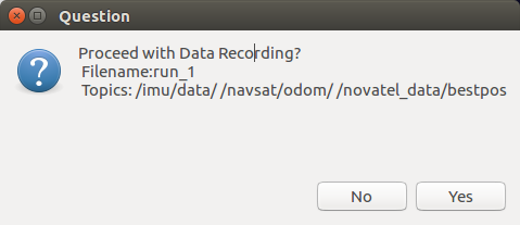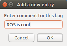 rosbag_record_gui GUI tool using Zenity for rosbag record in ROS. Prereqs Ubuntu GTK+ Zenity Usage Update permissions if needed: chmod +x rosbag_gui.sh Run: ./rosbag_gui.sh Enter a file name Enter in a comment Select topics to record Verify Expected Output Finish Recording Use crtl+c on the terminal window to finish recording Default Storage Location $HOME\rosbag-data\$TODAY\$filename.bag License MIT