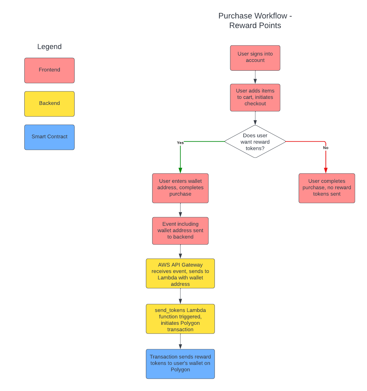 The API Gateway configured in the AWS Setup section assumes that a webhook will be used to trigger an event from a frontend that can kick off the backend social token transfer automatically when a certain event occurs. This repo does not make assumptions about what type of frontend should be used. The basic standards should be as follows: