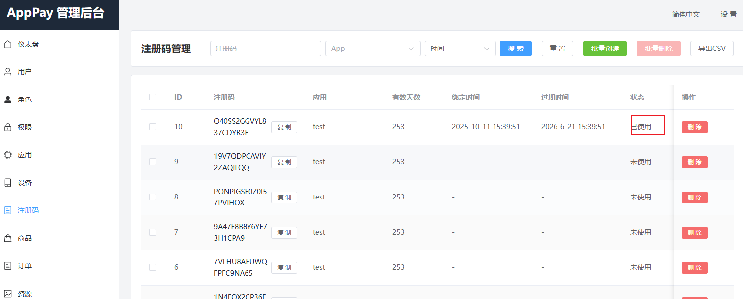 - 先不加入支付,只用实现注册码生成和验证接口即可。