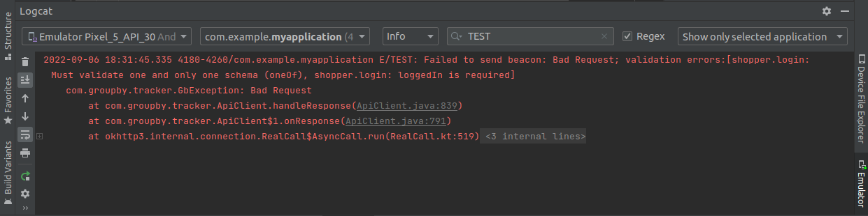 You can test your beacon implementation for validation errors using the onFailure callback. Example, where validation errors returned in a 400 Bad Request response are logged:
