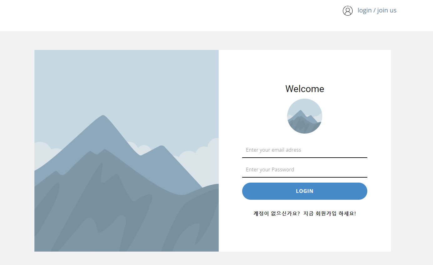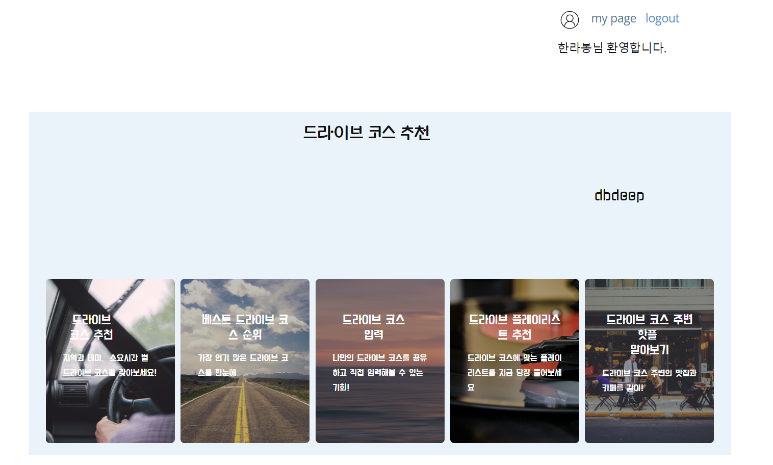 - 로그인시 오른쪽 상단에 마이페이지로 이동할 수 있는 버튼이 나타납니다.