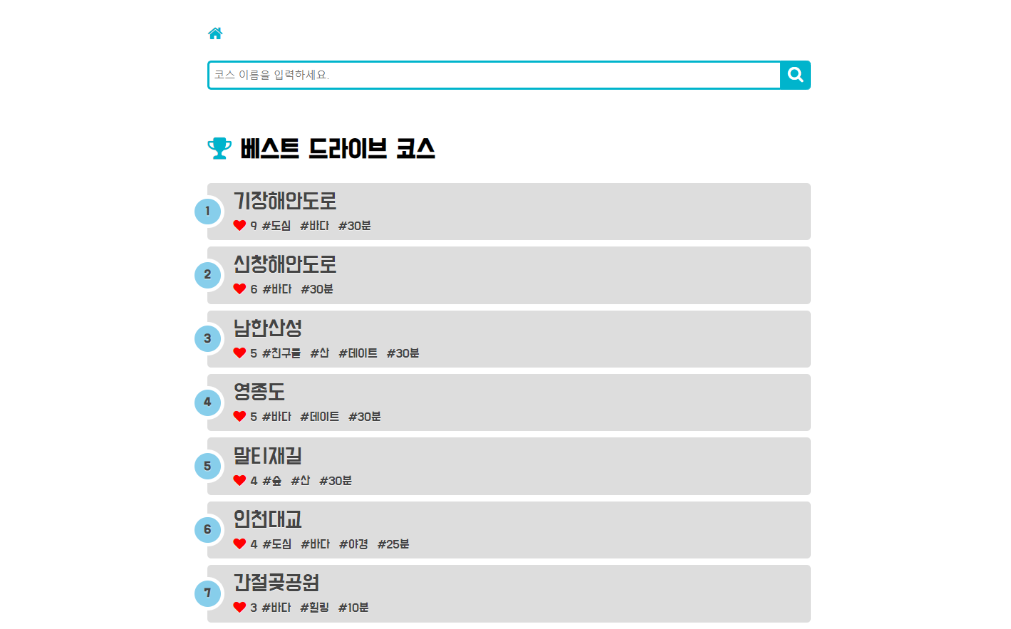 - 좋아요 수에 따른 코스 랭킹을 보여줍니다.