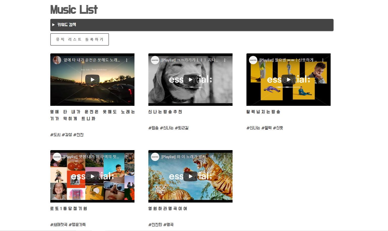 - 사용자들이 등록한 유튜브 음악 플레이 리스트를 볼 수 있습니다. (ListMusicController.java)