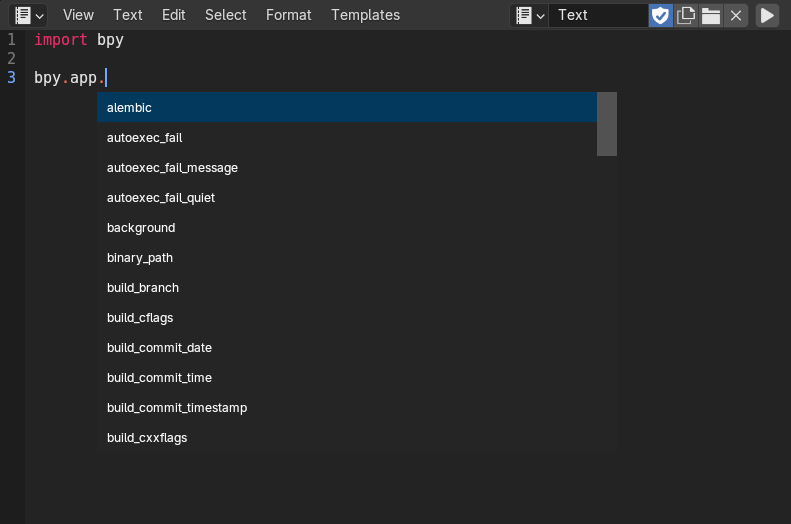 Code Completer is an add-on that allows you to use blender console autocomplete in a text editor with a VSCode-style user interface and suggestions for each text input.