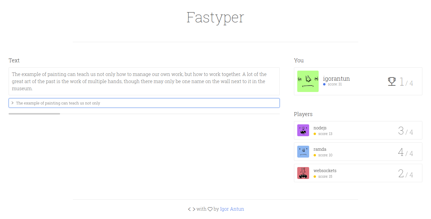 Example: Join the practicing room as IgorAntun: localhost:9000/room/practicing/username/IgorAntun