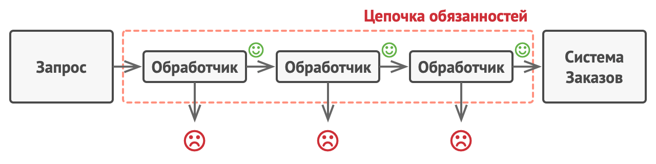Цепочка обязанностей — это поведенческий паттерн проектирования, который позволяет передавать запросы по цепочке обработчиков. Каждый узел цепи, сам решает, может ли он обработать или же передаст дальше.