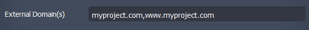 - external domain(s), each of which should be preliminarily bound to external IP of the corresponding node - either master application server instance or load balancer - via A Record or CNAME; provides trusted SSL certificates for production applications