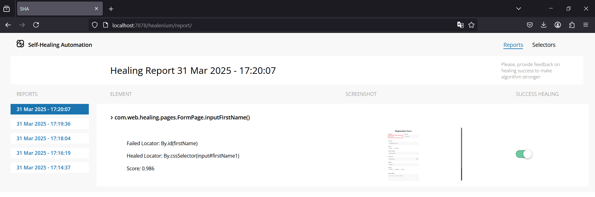 El screenshot se va a poder ver en el reporte de Allure, los screenshots de Healenium son automaticos.