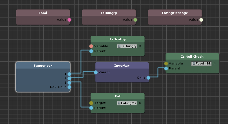 - AI graphs implemented as reusable scriptable objects, same instance can be run by multiple GameObjects.