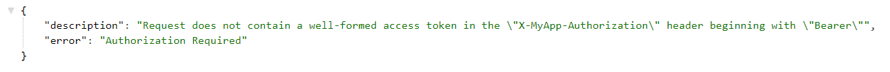 Any attempt to access an authenticated end-point without the correct header, or with an invalid JWT token will result in a response similar to the following:
