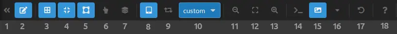 Responsive Panel: Toggle. Toggles responsive view and features. Responsive view is like the one seen on browsers. The other buttons are available when this option is selected.