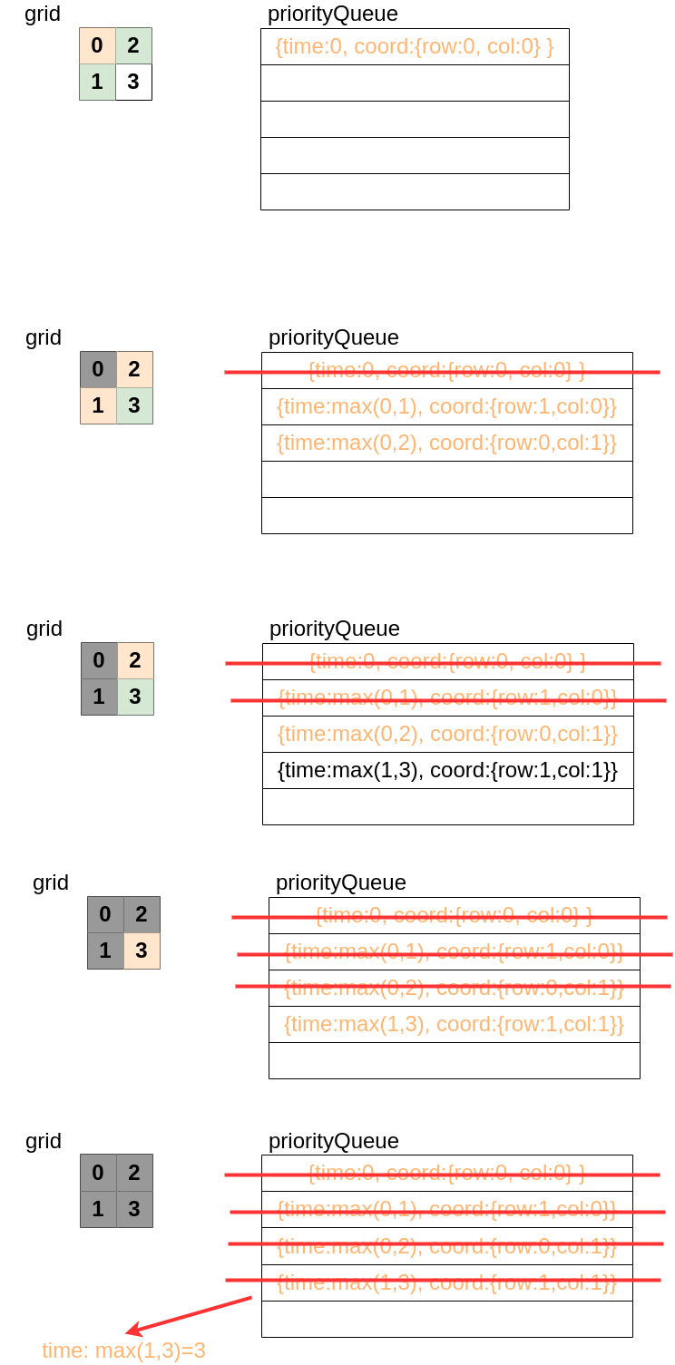 priorityQueue := &AdjacentMinHeap{AdjacentNode{Time: grid[0][0], Coord: Pair{Row: 0, Col: 0}}}