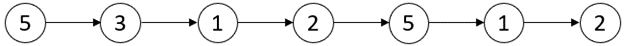 Input: head = [5,3,1,2,5,1,2] Output: [1,3] Explanation: There are three critical points: - [5,3,1,2,5,1,2]: The third node is a local minima because 1 is less than 3 and 2. - [5,3,1,2,5,1,2]: The fifth node is a local maxima because 5 is greater than 2 and 1. - [5,3,1,2,5,1,2]: The sixth node is a local minima because 1 is less than 5 and 2. The minimum distance is between the fifth and the sixth node. minDistance = 6 - 5 = 1. The maximum distance is between the third and the sixth node. maxDistance = 6 - 3 = 3.