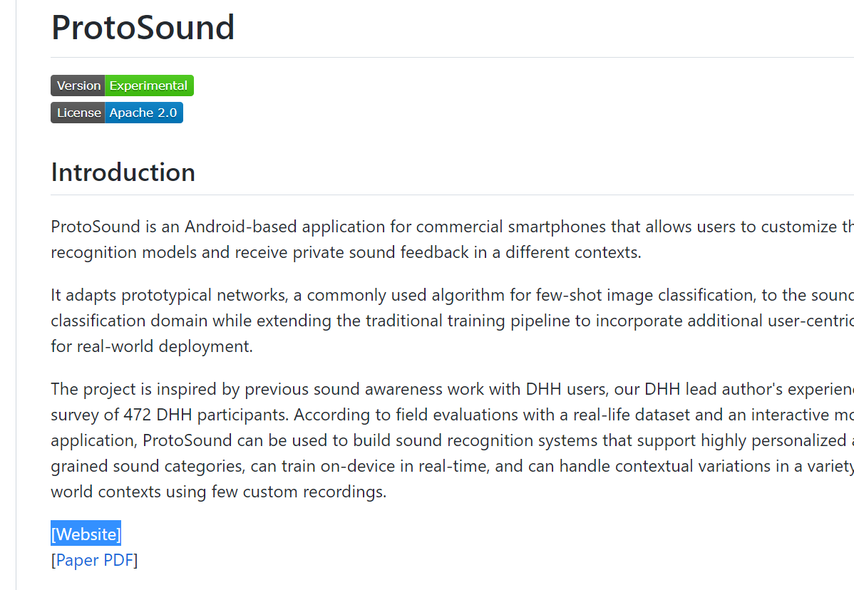 In the README, we point to the SoundWatch project on the Makeability Lab webpage.