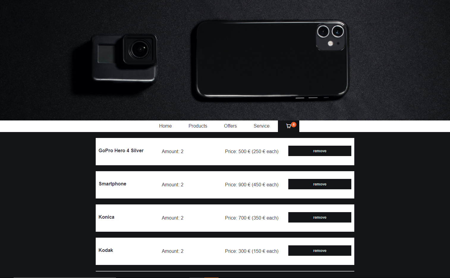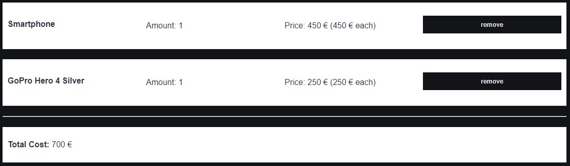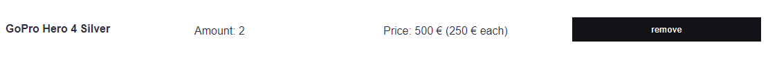 The "remove" button removes a product from the cart. If the amount is one the product will be removed completely from the cart. Otherwise if the amount is greater than one the product stays in the cart but the amount will be reduced by one. There are two states of the "remove" button.