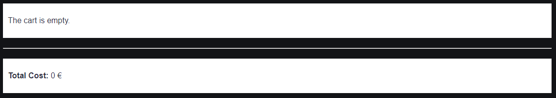 If there is no product in the cart a white bar with the text "The cart is empty" will be shown.