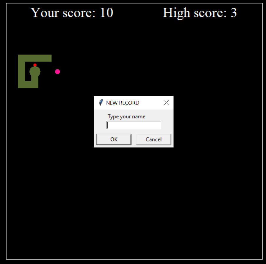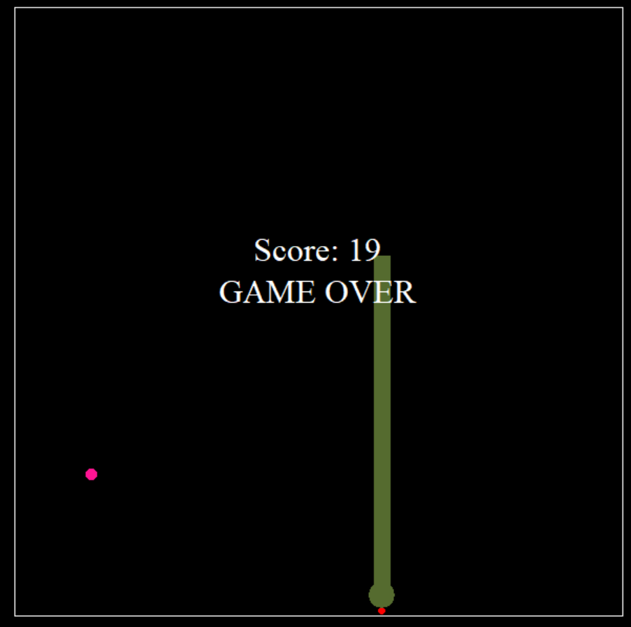 When the snake collides with one of the walls, or with its own body, it's game over and everything stops.