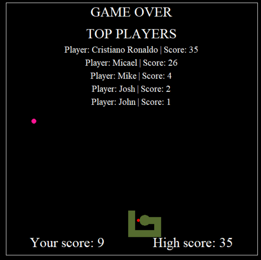 The game-over screen also has changes. It shows the list of top 10 high-scoring players, ordered by score.