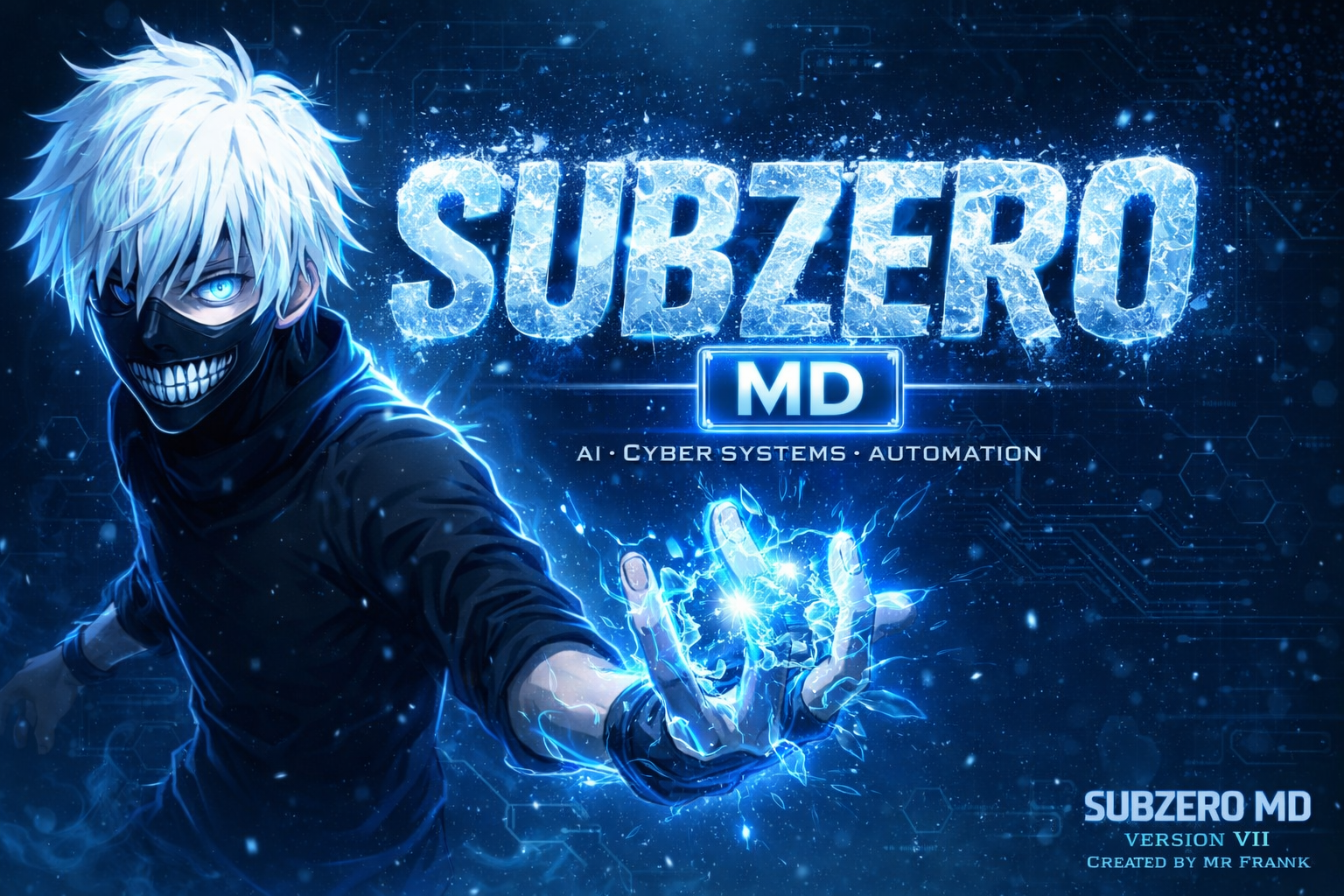 SubZero MD V7 is a powerful, multi-platform WhatsApp bot built on Baileys — engineered for speed, stability, and style. Packed with features, deployable anywhere, and maintained by MR FRANK OFC 🇿🇼.