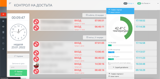 RFID-enabled authentication, authorization and time tracking for company propery access control.