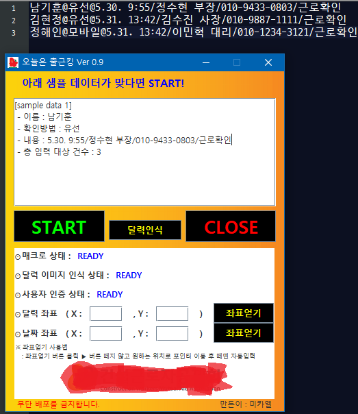 구분자 "@"로 데이터 구분(이름/출근 확인방법/내용)